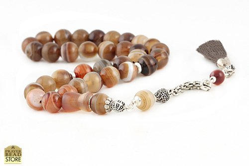 8mm 33 count authentic Yemen agate (banded agate) beads, handle and sterling silver tassel. Space between the beads is approximately 2-3 beads width. Free Shipping Worldwide, plus Free Handmade Luxury Gift Box.