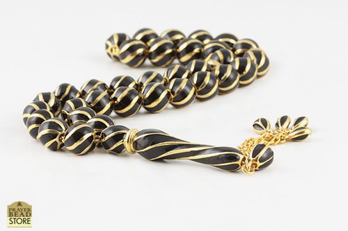 Made of 33 black & gold color enamel silver beads, handle and tassel. Space between the beads is approximately 2-3 beads width. "Limitied Edition". FREE handmade luxury gift box.