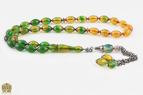 Made of 33 colorful amber bakelite beads and handle finished with Sterling silver tassel. FREE handmade luxury gift box.