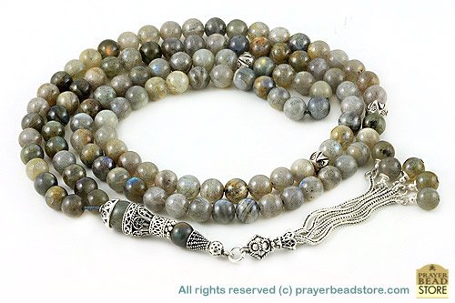 Made of 108 "high grade" authentic labradorite beads, Sterling silver seperators, handle and tassel. Free Shipping Worldwide, plus Free Handmade Luxury Gift Box.