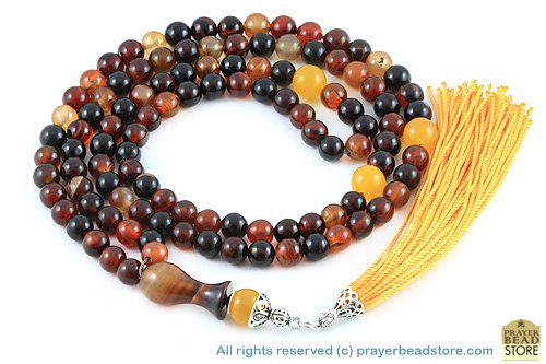 Made of 108 authentic Yemen agate beads, yellow agate seperators, silver and natural cotton tassel. Free Shipping Worldwide, plus Free Handmade Luxury Gift Box.