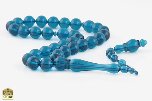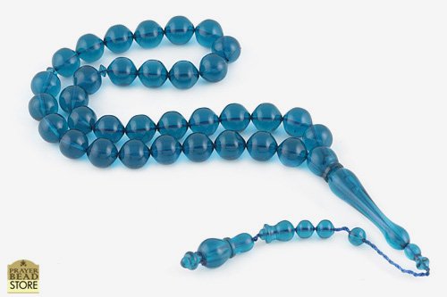 Made of 33 blue amber bakelite beads, handle and tassel. Space between the beads is approximately 2-3 beads width. FREE handmade luxury gift box.